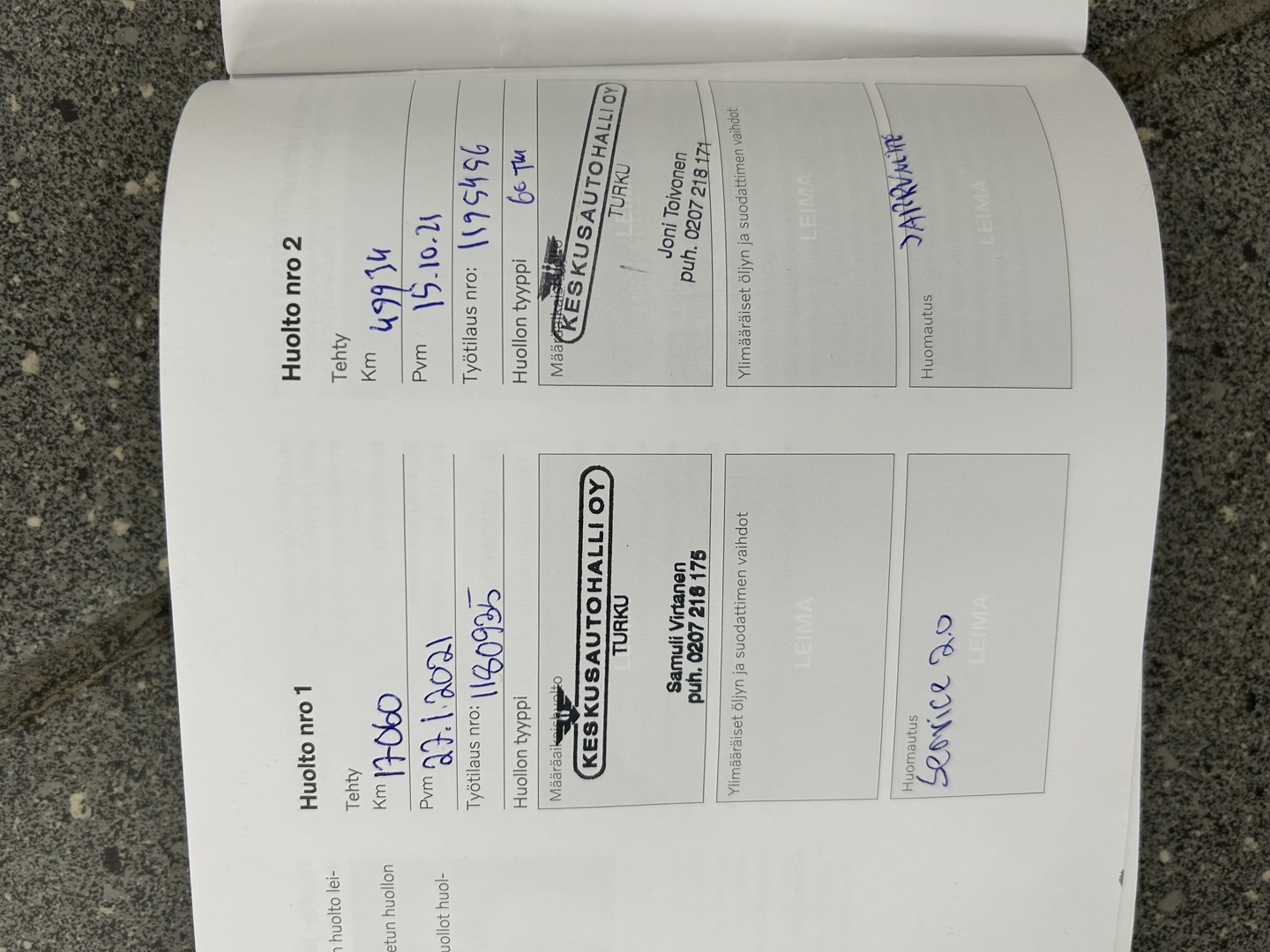 Huoltokirja paperinen