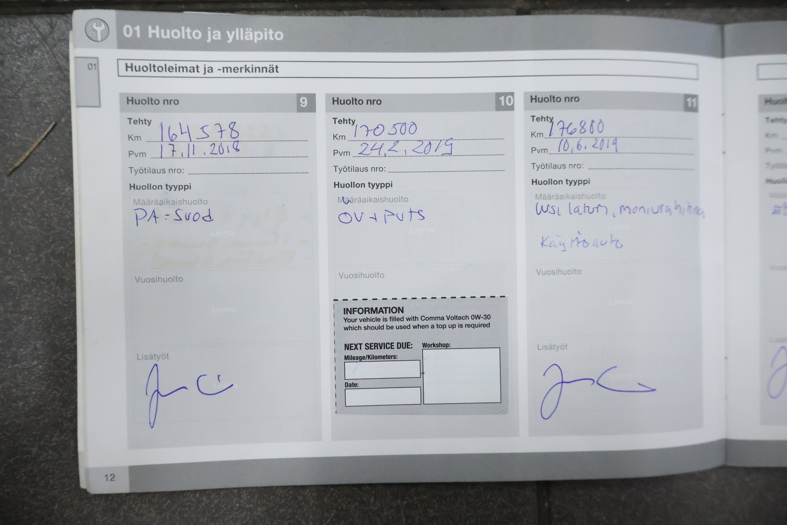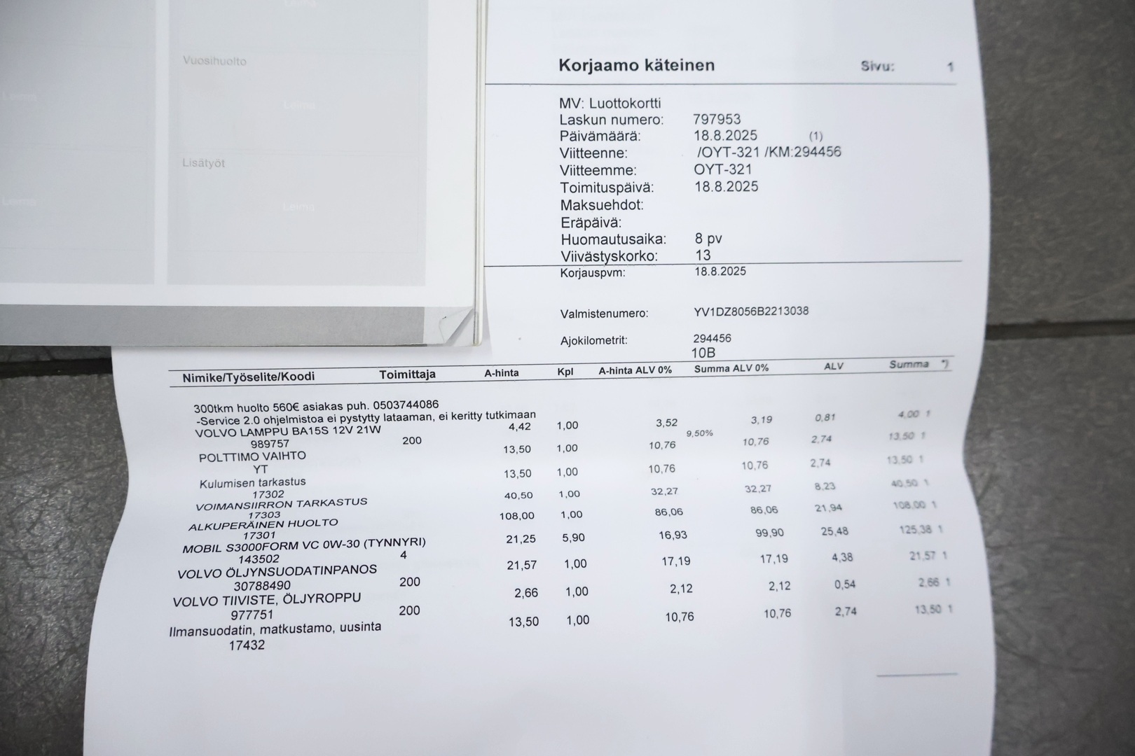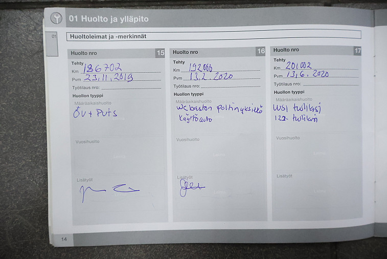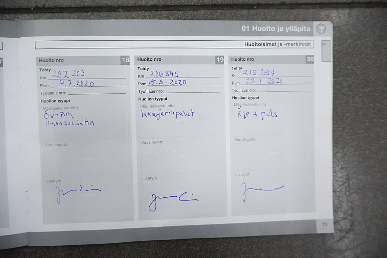 - Viimeisin huolto tehty 294 450 km kohdalla, 8/2025