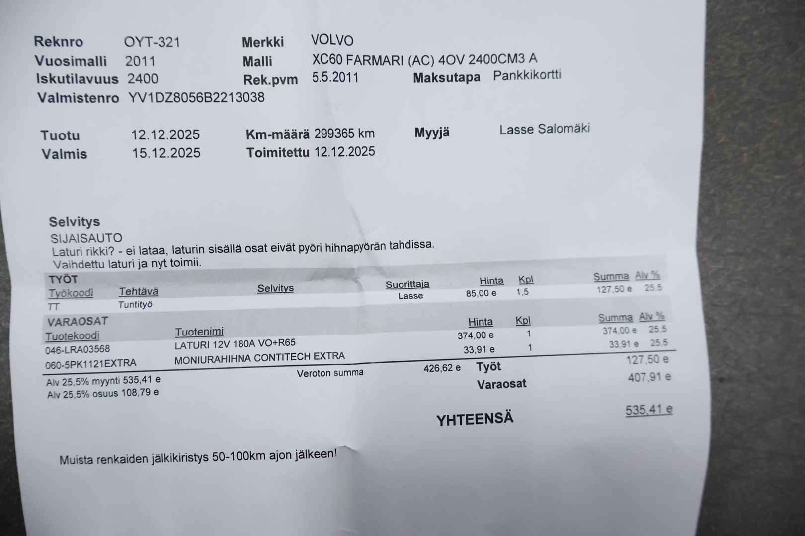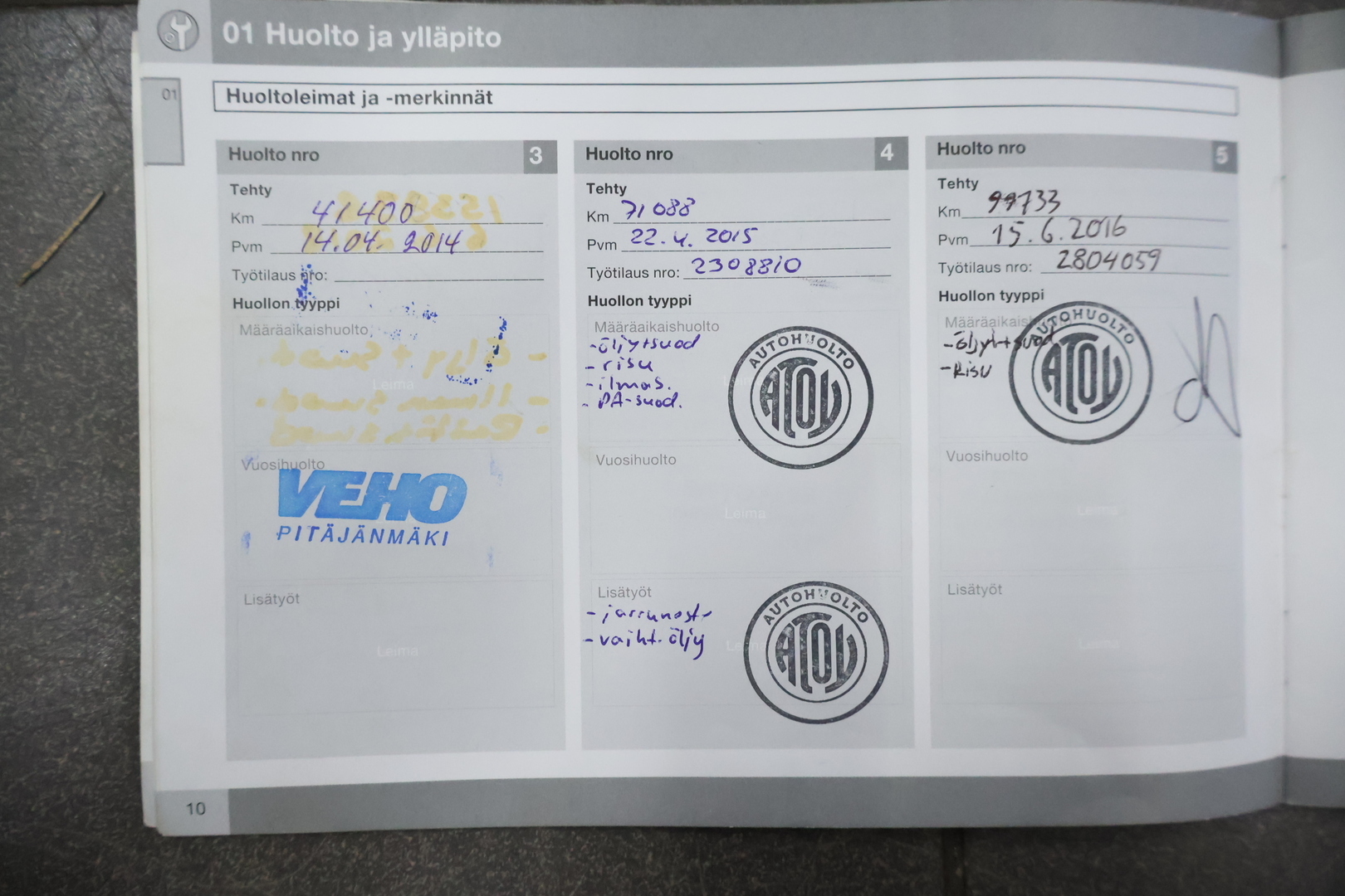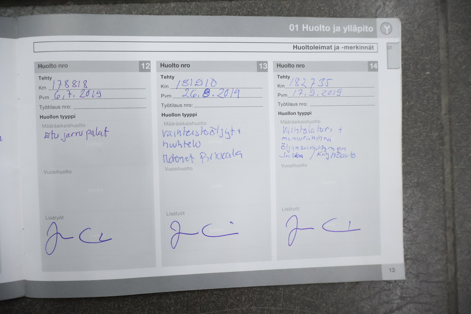 - Viimeisin huolto tehty 294 450 km kohdalla, 8/2025