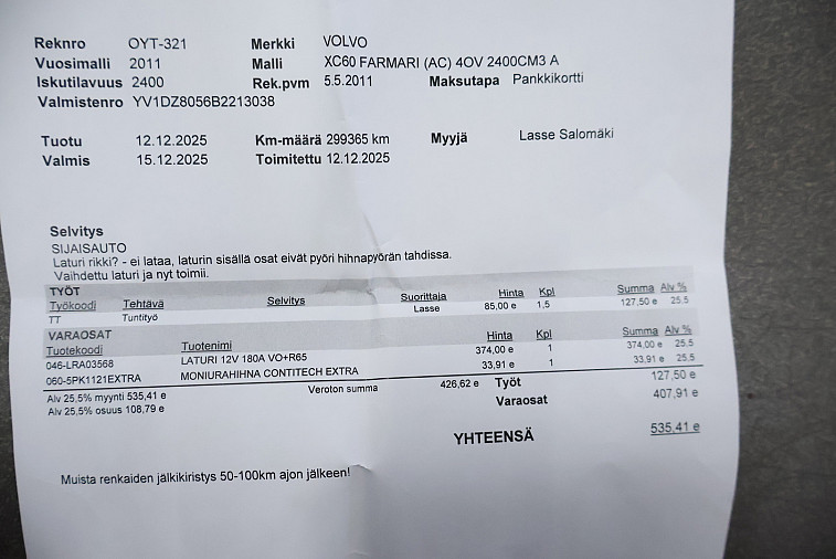 - Mittarilukema: 301000 km