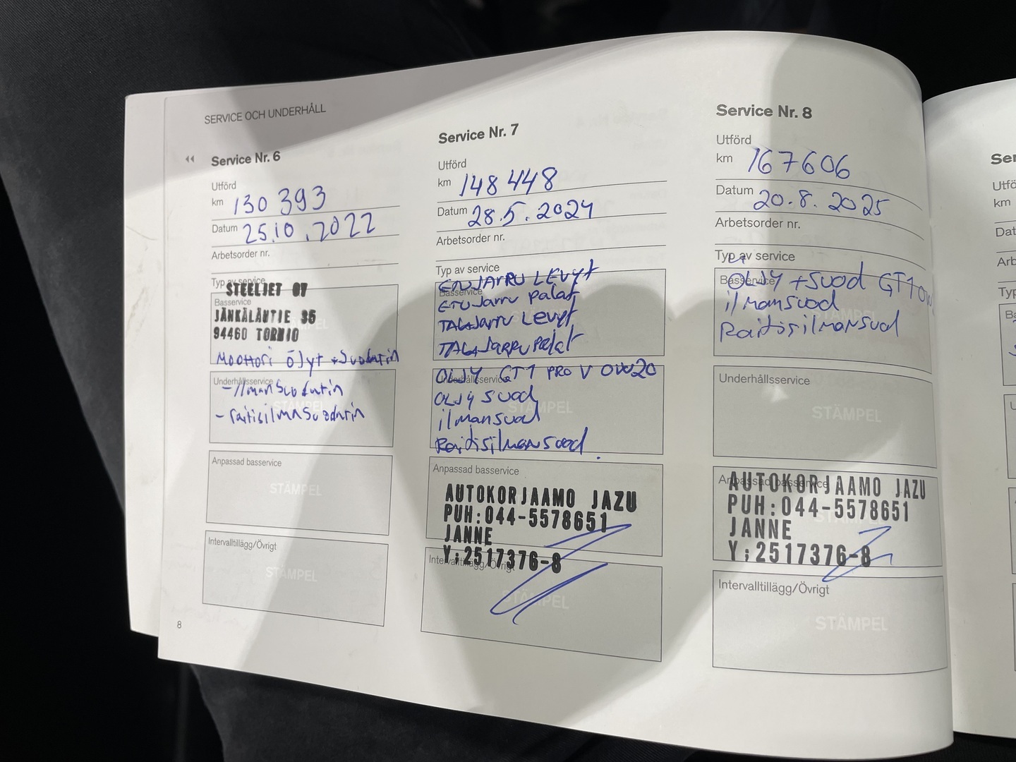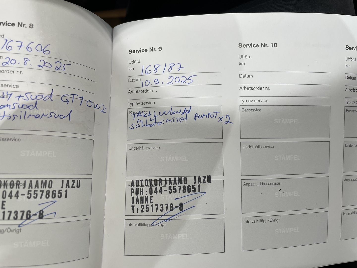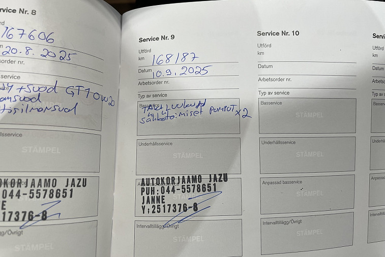- Viimeisin huolto tehty 167606km kohdalla, 08 / 2025